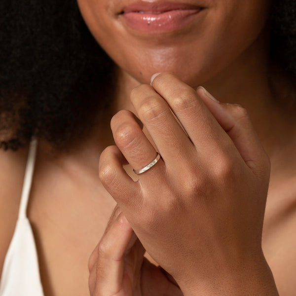 • White Gold Wedding Band - 2mm Wide - Flat - Polished
