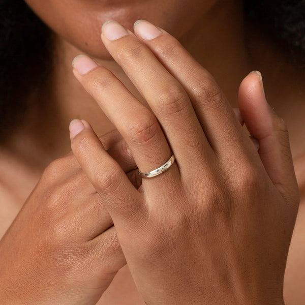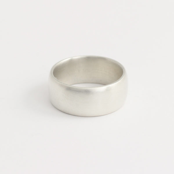 • White Gold Wedding Band - 8mm Wide - Rounded - Matte
